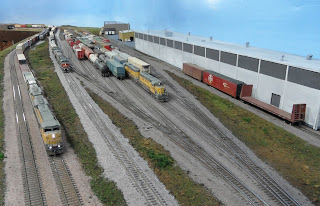 Been quite a while since I last posted. Jan/Feb are very busy months at work, but I will hopefully be able to post more in the coming weeks. I finally got going on ballasting the Proviso Yard. Got about half of the yard done, the eastern end. I used a mixture of Arizona Rock and Mineral CSX and Highball Brown for the Arrival/Departure tracks and just the Highball brown for the yard tracks. Used over 2 pounds of ballast, 16 fl. oz. of alcohol and a large bottle of Elmer's glue so far. I'm very happy with the use of different colors of ballast for the mainline, A/D tracks, and yard tracks. The different colors together with the differing heights of the tracks helps to distinguish the classes of track.